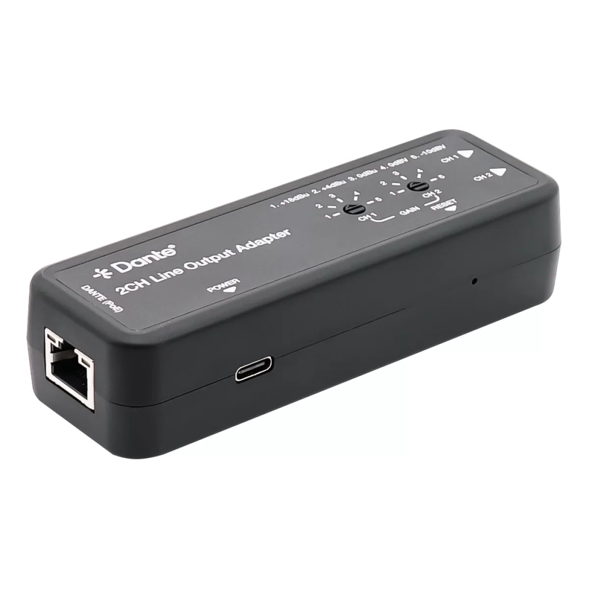- Преобразование 2 цифровых каналов Dante® в 2 аналоговых канала