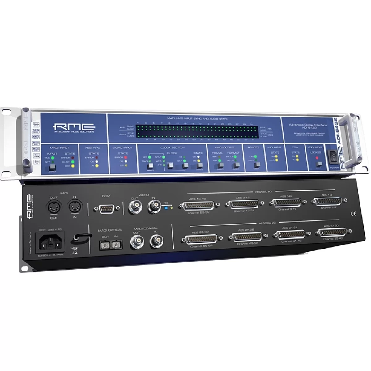RMERME ADI-6432 Redundant - 64-канальный преобразователь форматов из MADI в AES и наоборот. Модель идентична ADI-6432, отличие состоит в том, что она может быть подключена к двум различным электрическим цепям.