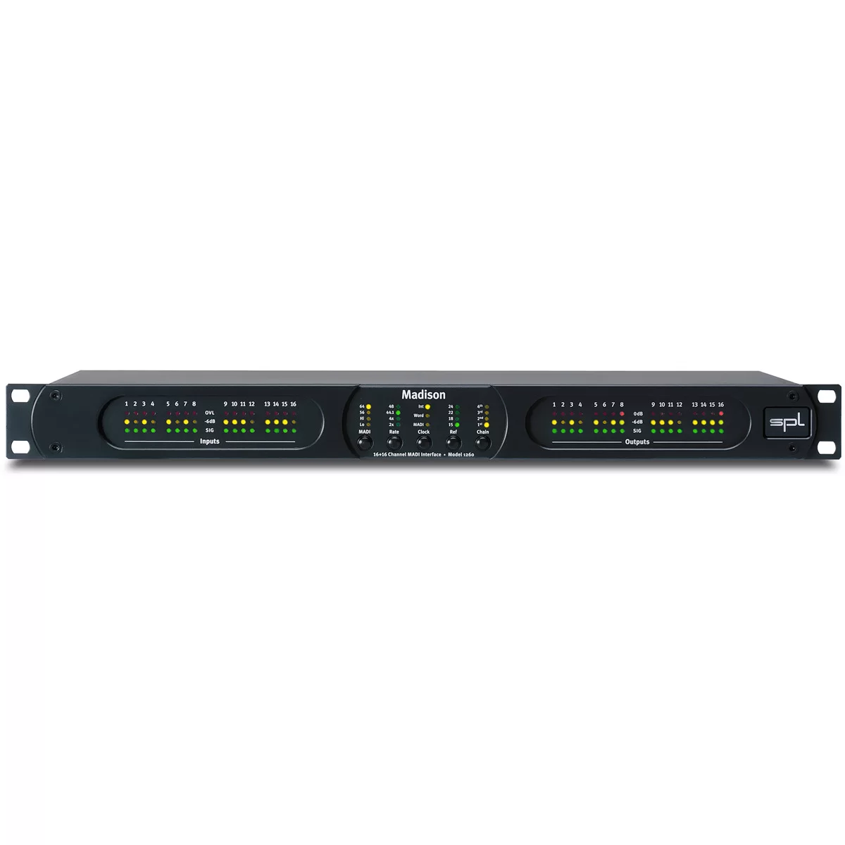 C 16 входами и 16 выходами в одном рэковом устройстве, Madison сочетает в себе двустороннюю конверсию сигнала и обработку MADI. Как истинный представитель SPL, Madison прост в управлении, предусматривает расширение и в принципе, является замечательно звучащей системой преобразования сигнала.