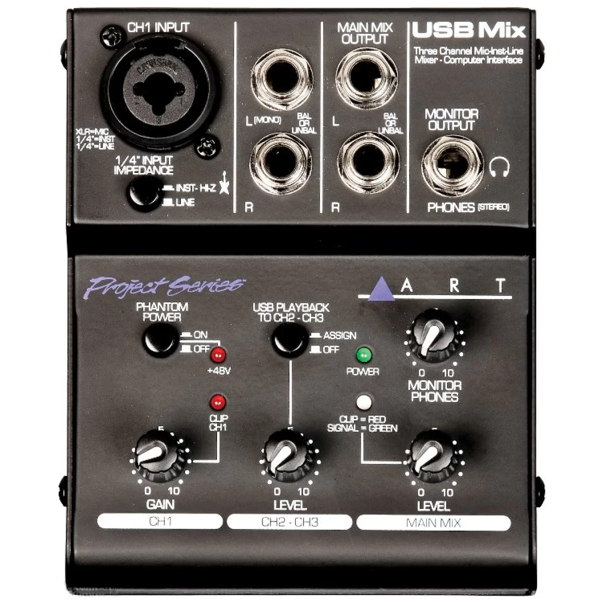 ARTART USB Mix - 3-х канальный микшер с микрофонным предусилителем и встроенным USB аудио интерфейсом.