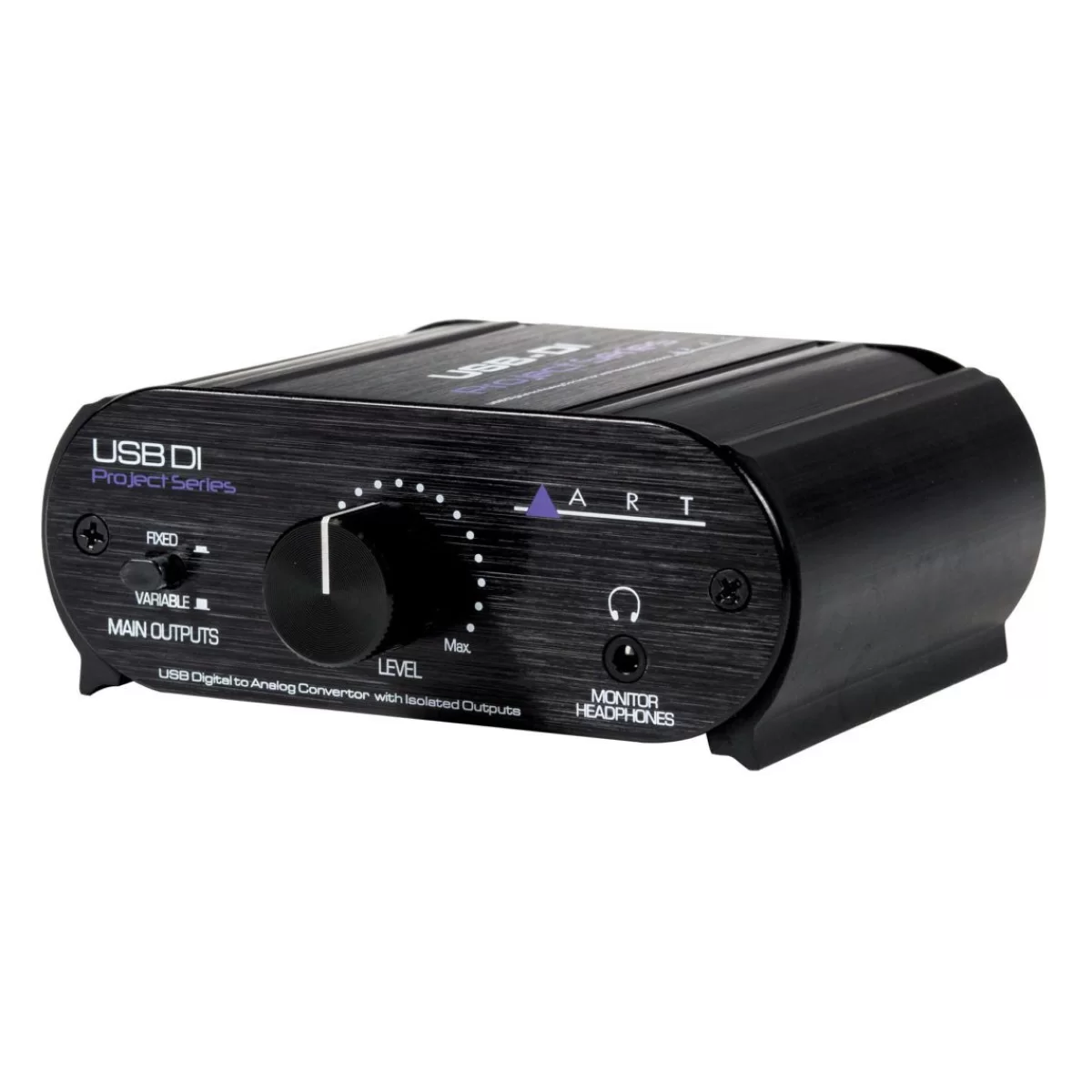 Переключатель Main Outputs на передней панели удерживает изолированные выходы на фиксированном уровне, одновременно контролируя уровень выхода на наушники. Выходы линейного уровня XLR доступны для подключения ко всем видам систем. Основные выходы всегда изолированы, но позволяют пользователю управлять опорным заземлением для снижения шума. Прибор питается от USB, потребляя менее 200 мА и устраняя необходимость во внешнем источнике питания. USBDI идеально подходит для подключения компьютеров к любой аудиосистеме.