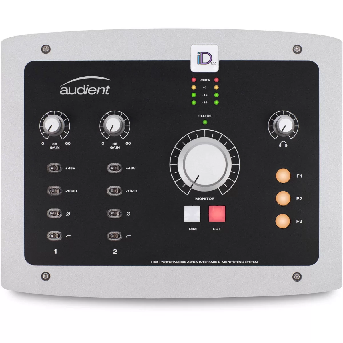 Audient iD22 использует те же микрофонные предусилители класса А, что и в остальных устройствах: в данном аудиоинтерфейсе их два. Они характеризуются низким уровнем шумов, высокой помехозащищенностью, высоким коэффициентом усиления до 70 дБ, бестрансформаторной схемой и широкой полосой пропускания. Вне зависимости от того, где вы используете iD22, вам всегда гарантирован звук мирового класса.