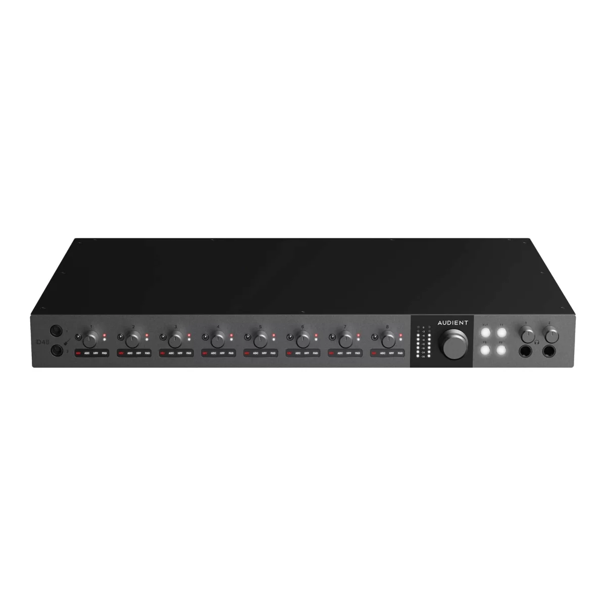 Кроме восьми комбинированных микрофонных/инструментальных/линейных входов, карта также оснащается двумя дополнительными инструментальными входами со схемой на JFET-транзисторах. Входы предназначены для записи электрогитар и другого оборудования. Подключить MIDI-устройства напрямую к интерфейсу не выйдет — iD48, как и другие устройства Audient, лишена отдельных MIDI-разъёмов.