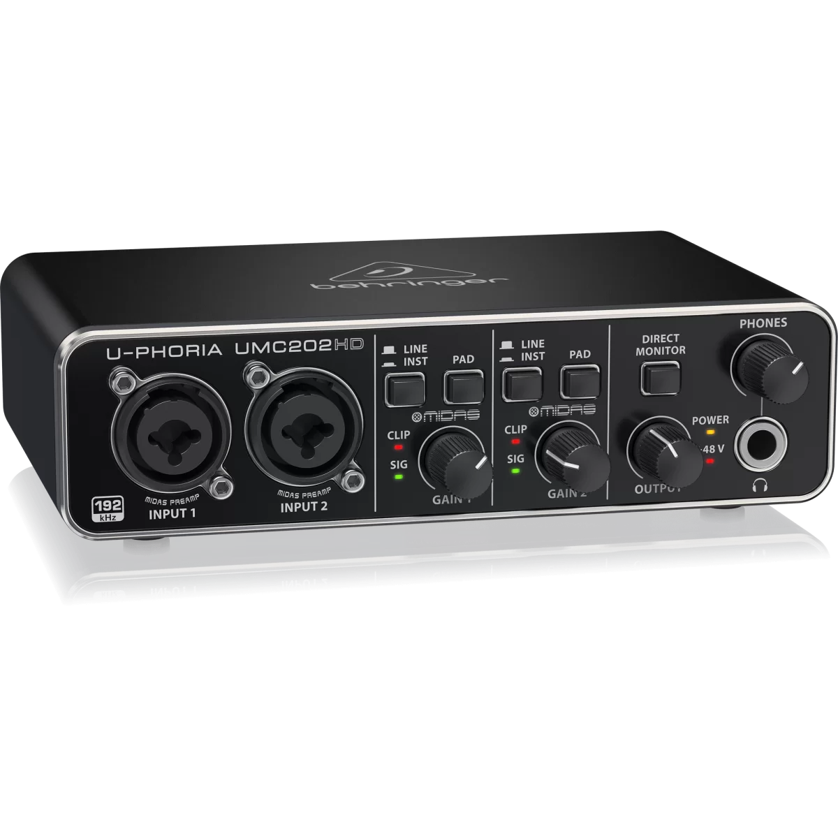 Behringer U-PHORIA UMC202HD – Это профессиональный USB-аудиоинтерфейс с высококачественными компонентами и АЦП/ЦАП 24 бит/192 кГц.